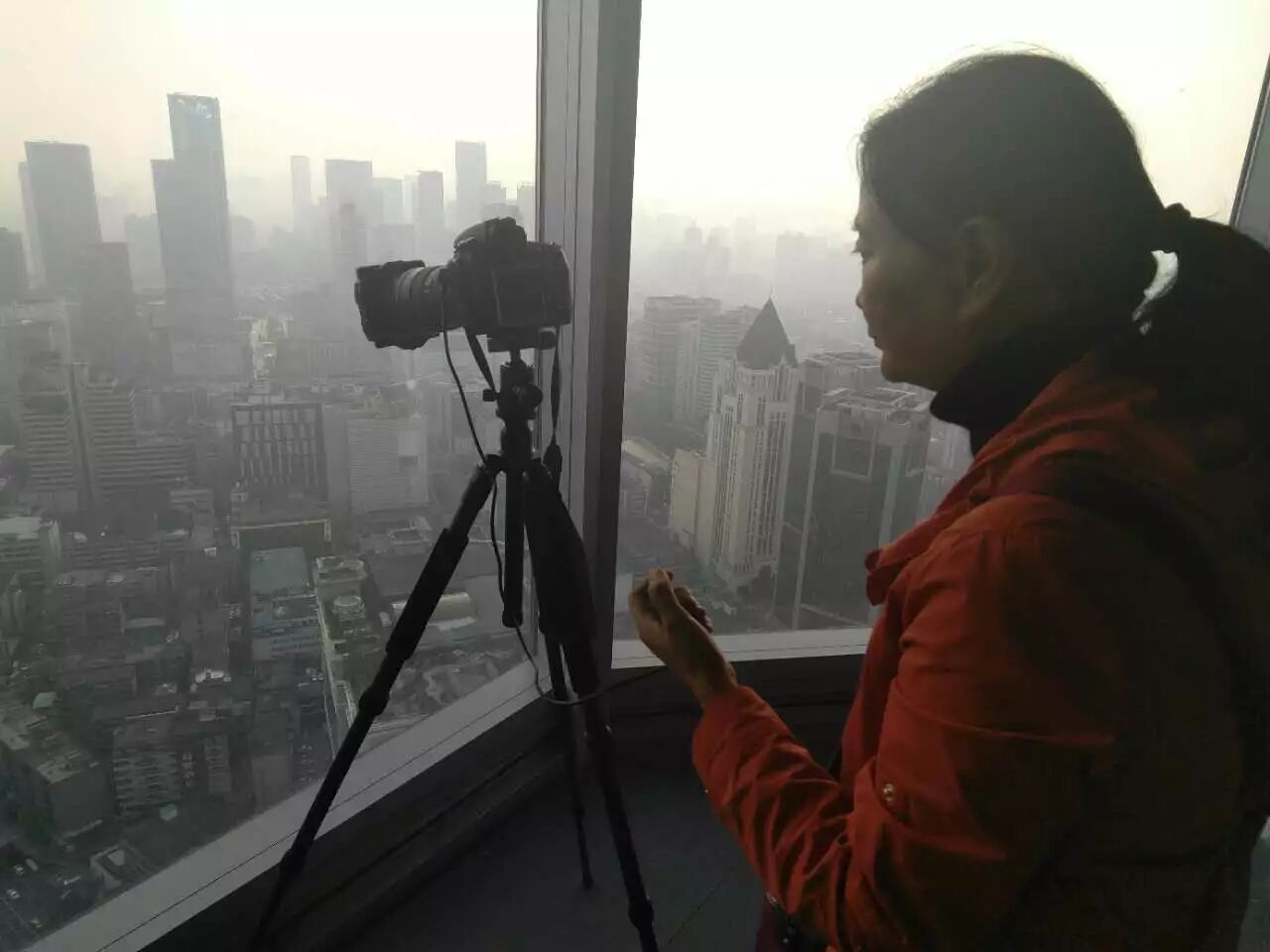真的挺高的,全是玻璃落地窗,大家围着走了一圈,王老师选择了最佳位置让大家准备好器材便开始了滤镜的使用教学。
