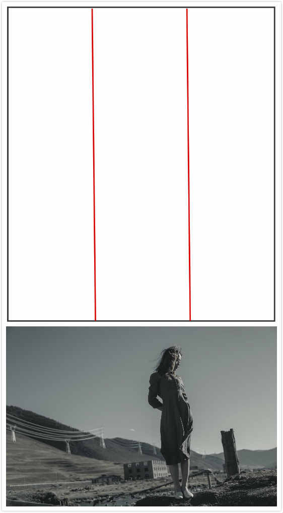 三分法构图像上面这样的方式安放人物时,要注意视线延伸和思维延伸的安放